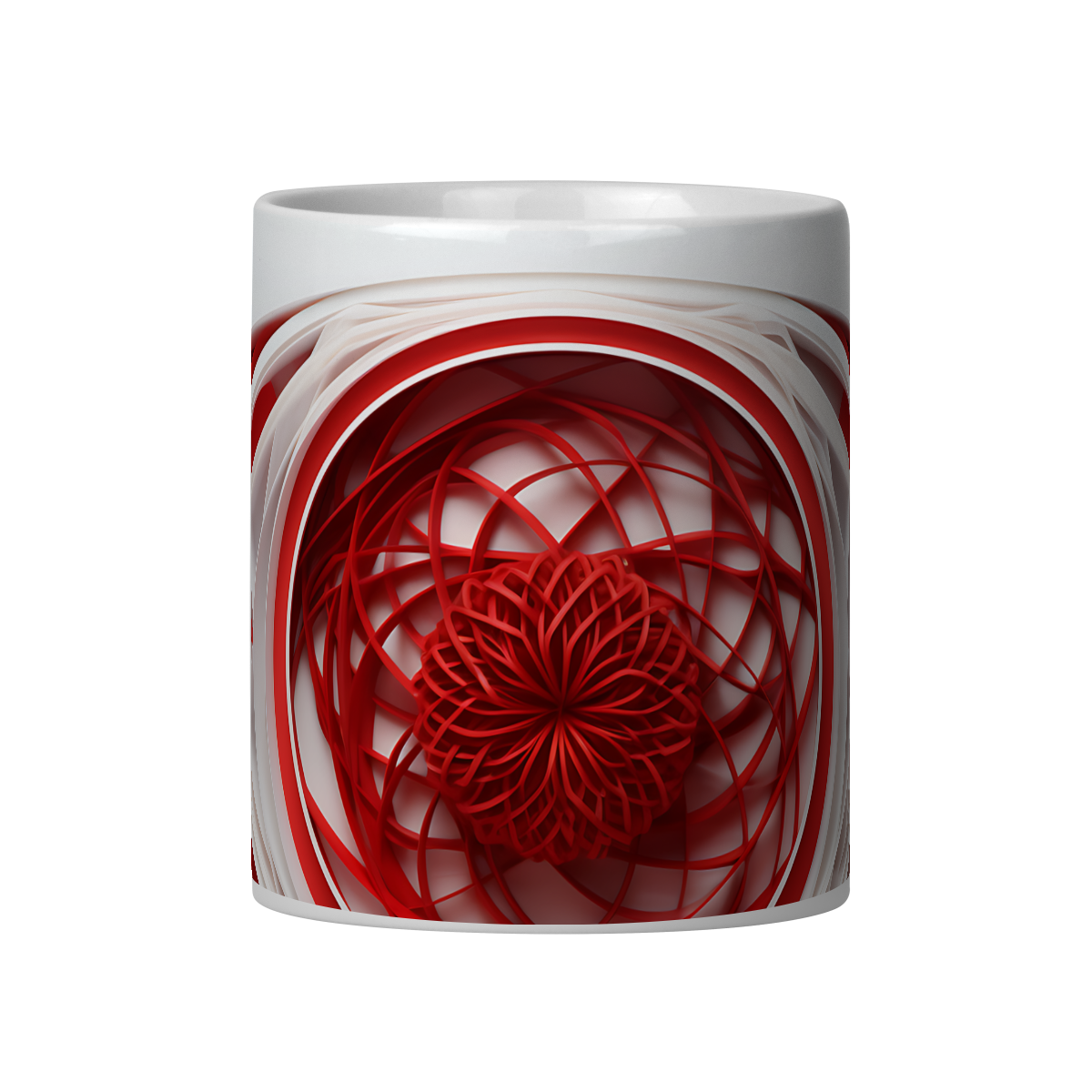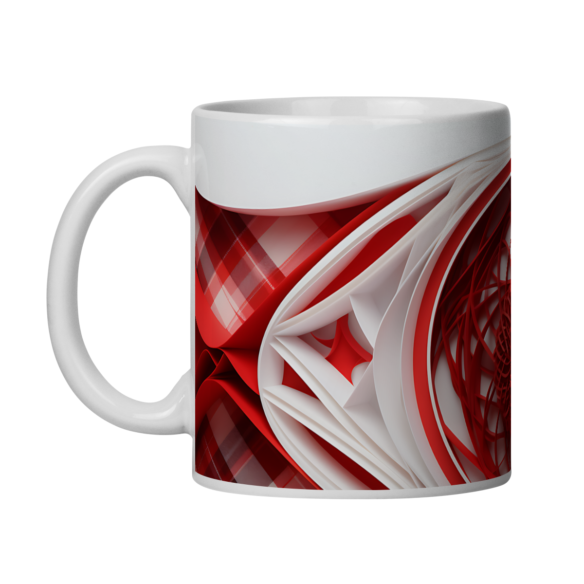 Esta caneca tem uma estampa com arte com efeito tridimensional, criando uma percepção de profundidade dos elementos.